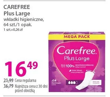 Ile kosztuje Wk艂adki higieniczne large Carefree plus?