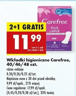 Ile kosztuje Wk艂adki higieniczne large fresh Carefree plus?