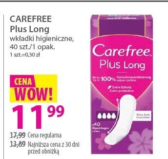 Ile kosztuje Wk艂adki higieniczne long Carefree plus?