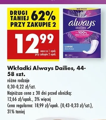 Gdzie mo偶na tanio kupi膰 produkt Wk艂adki large Always dailies?