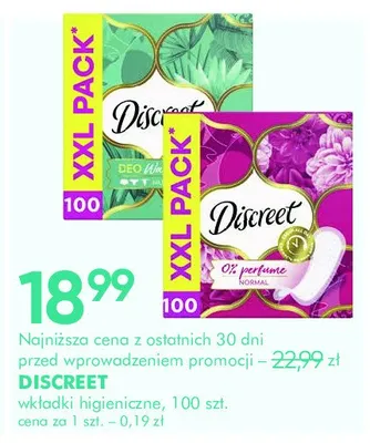 Cena produktu r贸偶ni si臋 w zale偶no艣ci od wybranego sklepu. Niestety nie posiadamy danych o aktualnych promocjach, jednak w艣r贸d archiwalnych ofert Wk艂adki normal mega economy Discreet kosztuje od 9,99 z艂 do 18,99 z艂.