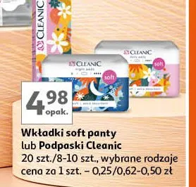 Cena produktu r贸偶ni si臋 w zale偶no艣ci od wybranego sklepu. Niestety nie posiadamy danych o aktualnych promocjach, jednak w艣r贸d archiwalnych ofert Wk艂adki soft Cleanic kosztuje od 4,49 z艂 do 5,69 z艂.