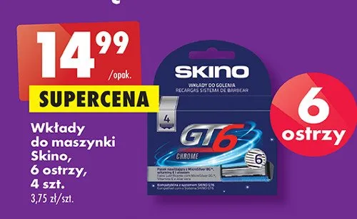 Cena produktu r贸偶ni si臋 w zale偶no艣ci od wybranego sklepu. Niestety nie posiadamy danych o aktualnych promocjach, jednak w艣r贸d archiwalnych ofert Wk艂ady do maszynki 6 ostrzy Skino gt6 kosztuje od 14,99 z艂.