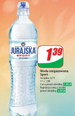 Cena produktu r贸偶ni si臋 w zale偶no艣ci od wybranego sklepu. Produkt Woda niegazowana Jurajska sport mo偶esz kupi膰 w promocji ju偶 od 1,19 z艂. Najta艅sza oferta, jak膮 mamy w naszej bazie jest z sieci Makro. Woda niegazowana Jurajska sport kosztuje aktualnie 1,19 z艂. Zobacz ofert臋