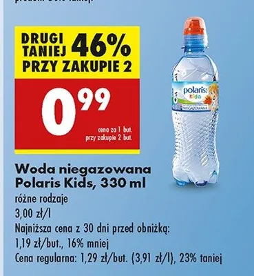 Zastanawiasz si臋, gdzie kupi膰 i ile kosztuje produkt Woda niegazowana Polaris? Regularnie sprawdzamy, czy jest promocja na ten produkt w Biedronka, Lidl, Kaufland, Auchan, Netto, Makro i innych sklepach. Aktualnie posiadamy 2 oferty promocyjne na ten produkt. Ceny zaczynaj膮 si臋 od 1,99z艂!