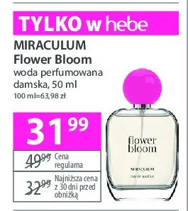 Cena produktu r贸偶ni si臋 w zale偶no艣ci od wybranego sklepu. Niestety nie posiadamy danych o aktualnych promocjach, jednak w艣r贸d archiwalnych ofert Woda perfrumowana Miraculum flower bloom kosztuje od 31,99 z艂 do 35,99 z艂.