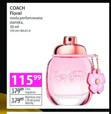Cena produktu r贸偶ni si臋 w zale偶no艣ci od wybranego sklepu. Niestety nie posiadamy danych o aktualnych promocjach, jednak w艣r贸d archiwalnych ofert Woda perfumowana COACH FLORAL kosztuje od 99,99 z艂 do 139,99 z艂.