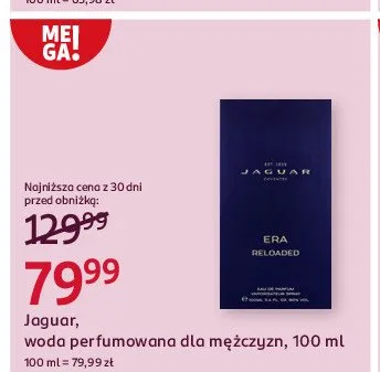 Cena produktu r贸偶ni si臋 w zale偶no艣ci od wybranego sklepu. Niestety nie posiadamy danych o aktualnych promocjach, jednak w艣r贸d archiwalnych ofert Woda perfumowana Jaguar era reloaded kosztuje od 79,99 z艂.