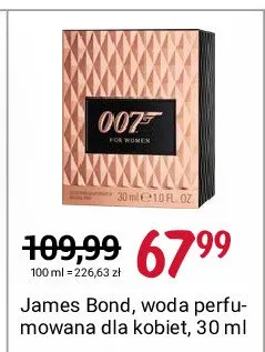 Cena produktu r贸偶ni si臋 w zale偶no艣ci od wybranego sklepu. Niestety nie posiadamy danych o aktualnych promocjach, jednak w艣r贸d archiwalnych ofert Woda perfumowana James bond 007 for women kosztuje od 67,99 z艂.
