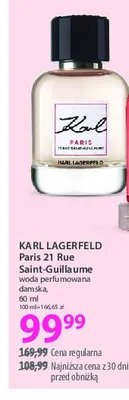 Ile kosztuje Woda perfumowana Karl lagerfeld 21 rue saint-guillaume?