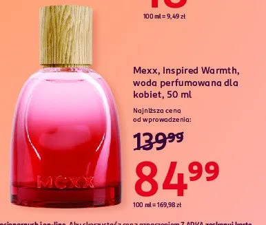 Cena produktu r贸偶ni si臋 w zale偶no艣ci od wybranego sklepu. Produkt Woda perfumowana Mexx inspired warmth mo偶esz kupi膰 w promocji ju偶 od 89,99 z艂. Najta艅sza oferta, jak膮 mamy w naszej bazie jest z sieci Drogerie Natura. Woda perfumowana Mexx inspired warmth kosztuje aktualnie 89,99 z艂. Zobacz ofert臋