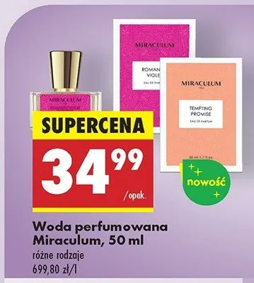 Zastanawiasz si臋, gdzie kupi膰 i ile kosztuje produkt Woda perfumowana MIRACULUM TEMPTING PROMISE? Regularnie sprawdzamy, czy jest promocja na ten produkt w Biedronka, Lidl, Kaufland, Auchan, Netto, Makro i innych sklepach. Aktualnie nie posiadamy ofert promocyjnych na ten produkt.