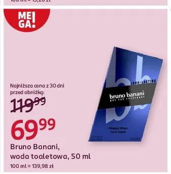 Cena produktu r贸偶ni si臋 w zale偶no艣ci od wybranego sklepu. Niestety nie posiadamy danych o aktualnych promocjach, jednak w艣r贸d archiwalnych ofert Woda toaletowa Bruno banani magic man kosztuje od 51,99 z艂 do 79,99 z艂.