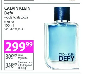 Cena produktu r贸偶ni si臋 w zale偶no艣ci od wybranego sklepu. Niestety nie posiadamy danych o aktualnych promocjach, jednak w艣r贸d archiwalnych ofert Woda toaletowa Calvin klein defy kosztuje od 169,99 z艂 do 299,99 z艂.