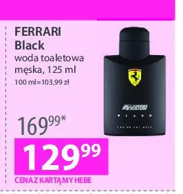 Cena produktu r贸偶ni si臋 w zale偶no艣ci od wybranego sklepu. Niestety nie posiadamy danych o aktualnych promocjach, jednak w艣r贸d archiwalnych ofert Woda toaletowa Ferrari black Ferrari cosmetics kosztuje od 129,99 z艂.