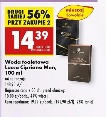 Cena produktu r贸偶ni si臋 w zale偶no艣ci od wybranego sklepu. Niestety nie posiadamy danych o aktualnych promocjach, jednak w艣r贸d archiwalnych ofert Woda toaletowa Lucca cipriano gold driver kosztuje od 10,99 z艂 do 14,99 z艂.