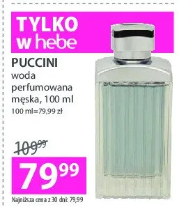 Cena produktu r贸偶ni si臋 w zale偶no艣ci od wybranego sklepu. Produkt Woda toaletowa Puccini men mo偶esz kupi膰 w promocji ju偶 od 32,99 z艂 do 199 z艂. Najta艅sza oferta, jak膮 mamy w naszej bazie jest z sieci Rossmann. Woda toaletowa Puccini men kosztuje aktualnie 32,99 z艂. Zobacz ofert臋