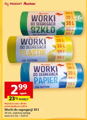 Ile kosztuje Worki do segregacji szk艂o 35 l Auchan r贸偶norodne (logo czerwone)?