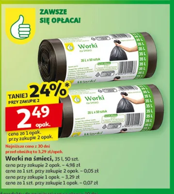 Ile kosztuje Worki na 艣mieci 35 l Podniesiony kciuk?