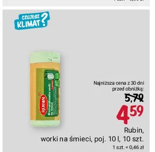 Cena produktu r贸偶ni si臋 w zale偶no艣ci od wybranego sklepu. Niestety nie posiadamy danych o aktualnych promocjach, jednak w艣r贸d archiwalnych ofert Worki na 艣mieci biodegradalne 10l Rubin kosztuje od 4,59 z艂.