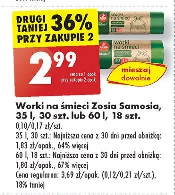 Ile kosztuje Worki na 艣mieci wi膮zane 35 l Zosia samosia?