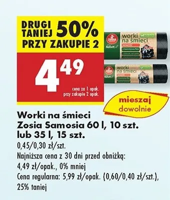 Ile kosztuje Worki na 艣mieci z ta艣m膮 35l zapach zielonej herbaty Zosia samosia?