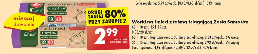 Worki na 艣mieci z tasm膮 truskawkowe 60 l Zosia samosia promocje w sklepach - znajd藕 ofert臋 dla siebie!