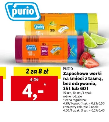 Ile kosztuje Worki zapachowe truskawkowe z taśmą ściągającą 60 l Purio?