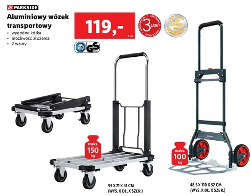 Gdzie mo偶na tanio kupi膰 produkt W贸zek transportowy 95 x 71 x 41 cm Parkside?