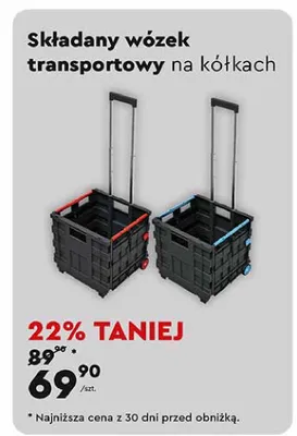Cena produktu r贸偶ni si臋 w zale偶no艣ci od wybranego sklepu. Niestety nie posiadamy danych o aktualnych promocjach, jednak w艣r贸d archiwalnych ofert W贸zek transportowy dwuko艂owy kosztuje od 69,9 z艂.