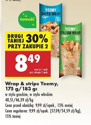 Cena produktu r贸偶ni si臋 w zale偶no艣ci od wybranego sklepu. Niestety nie posiadamy danych o aktualnych promocjach, jednak w艣r贸d archiwalnych ofert Wrap w stylu w艂oskim Yeemy kosztuje od 8,49 z艂.