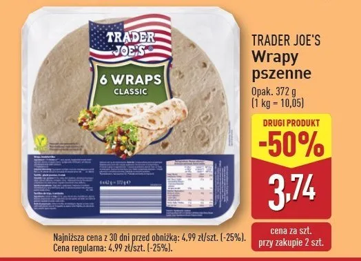 Gdzie mo偶na tanio kupi膰 produkt Wrapsy pszenne 6 szt Trader joe's?