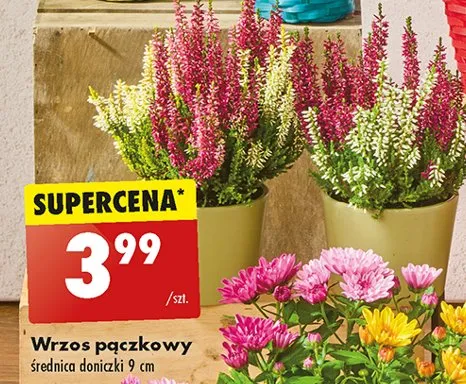 Cena produktu r贸偶ni si臋 w zale偶no艣ci od wybranego sklepu. Niestety nie posiadamy danych o aktualnych promocjach, jednak w艣r贸d archiwalnych ofert Wrzos p膮czkowy 艣r. 9 cm kosztuje od 2,59 z艂 do 3,99 z艂.