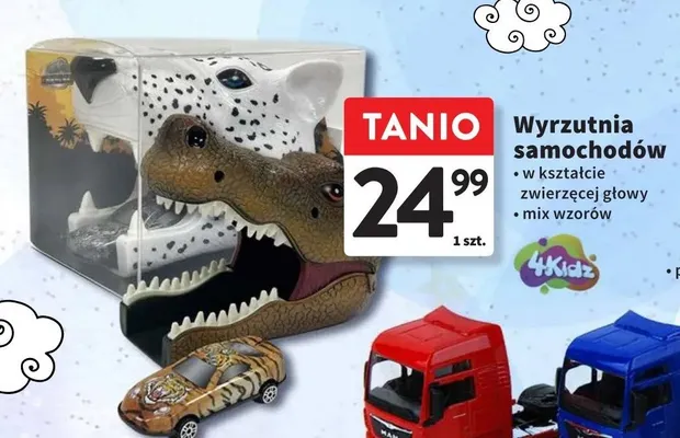 Cena produktu r贸偶ni si臋 w zale偶no艣ci od wybranego sklepu. Niestety nie posiadamy danych o aktualnych promocjach, jednak w艣r贸d archiwalnych ofert Wyrzutnia samochodzik贸w 4kidz kosztuje od 24,99 z艂.