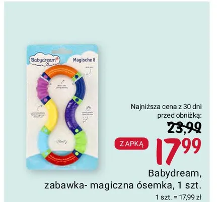 Cena produktu r贸偶ni si臋 w zale偶no艣ci od wybranego sklepu. Niestety nie posiadamy danych o aktualnych promocjach, jednak w艣r贸d archiwalnych ofert Zabawka magiczna 贸semka Babydream kosztuje od 17,99 z艂.