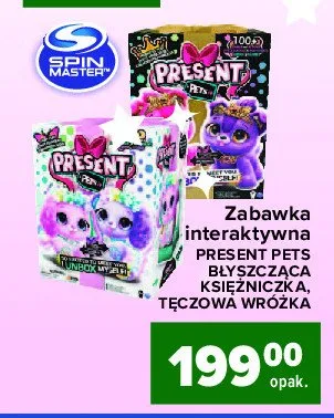 Cena produktu różni się w zależności od wybranego sklepu. Niestety nie posiadamy danych o aktualnych promocjach, jednak wśród archiwalnych ofert Zabawka present pets błyszcząca księżniczka Spin master kosztuje od 199 zł.