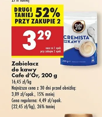 Cena produktu r贸偶ni si臋 w zale偶no艣ci od wybranego sklepu. Niestety nie posiadamy danych o aktualnych promocjach, jednak w艣r贸d archiwalnych ofert Zabielacz do kawy Cafe d'or kosztuje od 3,29 z艂 do 3,69 z艂.