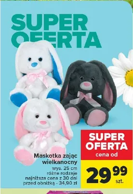 Cena produktu r贸偶ni si臋 w zale偶no艣ci od wybranego sklepu. Niestety nie posiadamy danych o aktualnych promocjach, jednak w艣r贸d archiwalnych ofert Zaj膮c wielkanocny 25 cm kosztuje od 29,99 z艂.