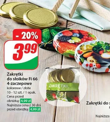 Cena produktu r贸偶ni si臋 w zale偶no艣ci od wybranego sklepu. Niestety nie posiadamy danych o aktualnych promocjach, jednak w艣r贸d archiwalnych ofert Zakr臋tka do s艂oika fi66 warzywniak kosztuje od 3,39 z艂 do 3,99 z艂.