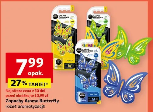 Cena produktu r贸偶ni si臋 w zale偶no艣ci od wybranego sklepu. Niestety nie posiadamy danych o aktualnych promocjach, jednak w艣r贸d archiwalnych ofert Zapach do auta new car Aroma car butterfly kosztuje od 7,99 z艂.