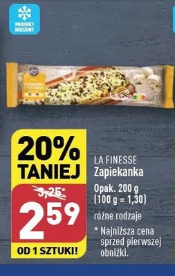 Cena produktu r贸偶ni si臋 w zale偶no艣ci od wybranego sklepu. Niestety nie posiadamy danych o aktualnych promocjach, jednak w艣r贸d archiwalnych ofert Zapiekanka z pieczarkami La finesse kosztuje od 2,59 z艂.