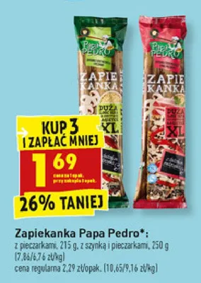 Cena produktu r贸偶ni si臋 w zale偶no艣ci od wybranego sklepu. Niestety nie posiadamy danych o aktualnych promocjach, jednak w艣r贸d archiwalnych ofert Zapiekanka z serem mozzarella i pieczarkami xxl Papa pedro kosztuje od 1,69 z艂.