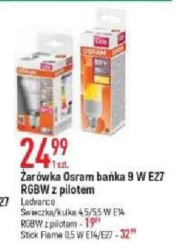 Cena produktu r贸偶ni si臋 w zale偶no艣ci od wybranego sklepu. Produkt 呕ar贸wka led 0.5w e14 Osram mo偶esz kupi膰 w promocji ju偶 od 13,99 z艂 do 14,99 z艂. Najta艅sza oferta, jak膮 mamy w naszej bazie jest z sieci Leroy Merlin. 呕ar贸wka led 0.5w e14 Osram kosztuje aktualnie 13,99 z艂. Zobacz ofert臋