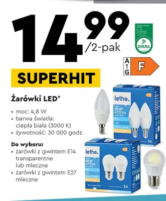 Przegl膮daj podobne oferty promocyjne do 呕ar贸wki led e27 40w mleczne Lethe!