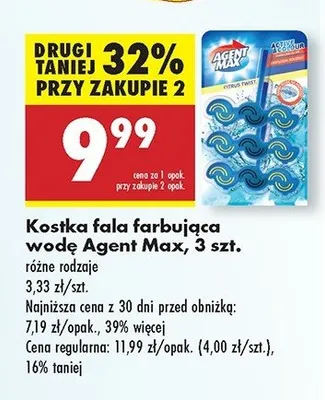 Cena produktu różni się w zależności od wybranego sklepu. Niestety nie posiadamy danych o aktualnych promocjach, jednak wśród archiwalnych ofert Zawieszka do wc żelowa cytrusowa świeżość Agent max kosztuje od 6,49 zł do 9,99 zł.
