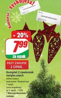 Cena produktu r贸偶ni si臋 w zale偶no艣ci od wybranego sklepu. Niestety nie posiadamy danych o aktualnych promocjach, jednak w艣r贸d archiwalnych ofert Zawieszki 艣wi膮teczne kosztuje od 7,99 z艂 do 15 z艂.