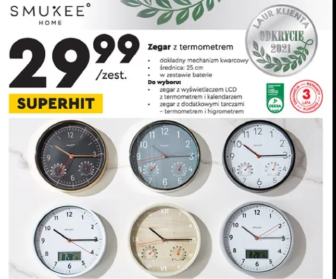 Przegl膮daj podobne oferty promocyjne do Zegar z termometrem i kalendarzem Smukee home!