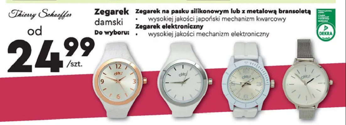 Zegarek damski na pasku silikonowym Thierry schaeffer aktualnie nie wyst臋puje w bazie naszych gazetek promocyjnych. Nie martw si臋! Gdy tylko pojawi si臋 ciekawa promocja na Zegarek damski na pasku silikonowym Thierry schaeffer, umie艣cimy j膮 na naszej stronie