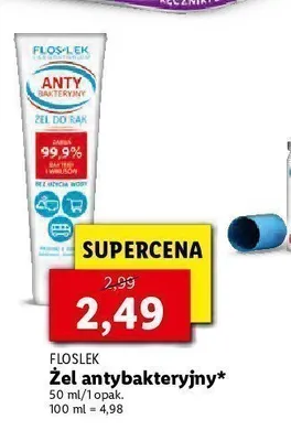 Cena produktu r贸偶ni si臋 w zale偶no艣ci od wybranego sklepu. Niestety nie posiadamy danych o aktualnych promocjach, jednak w艣r贸d archiwalnych ofert 呕el antybakteryjny Floslek kosztuje od 2,49 z艂 do 3,99 z艂.