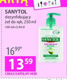 Cena produktu różni się w zależności od wybranego sklepu. Niestety nie posiadamy danych o aktualnych promocjach, jednak wśród archiwalnych ofert Żel do dezynfekcji rąk Sanytol kosztuje od 11,89 zł do 16,99 zł.